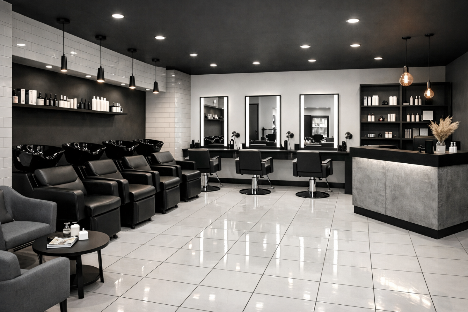 Très beau salon de coiffure, créée il y a plus de 30 ans, entièrement refait, lumineux, emplacement commercial de premier choix avec équipe en place (4 coiffeuses) et clientèle qualitative.
